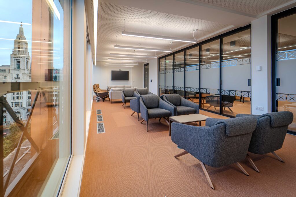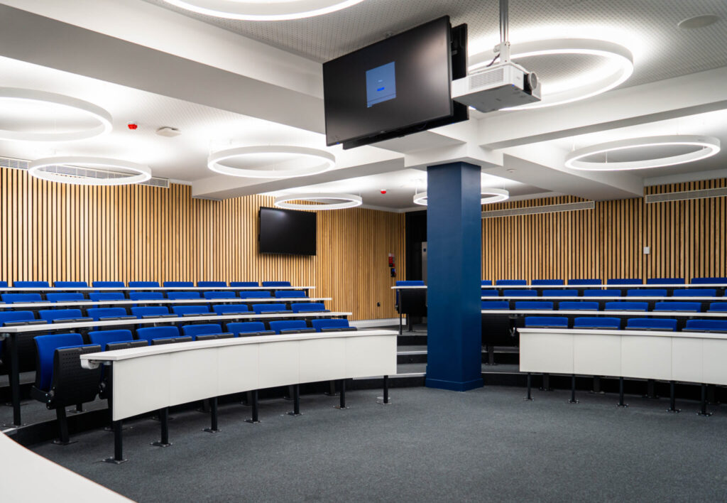 CAT B refurbishment and fit out works across 9 storeys, including basement and lightwell, to upgrade existing facilities and provide a new HQ for the Bayes Business School, bringing together departments and specialists from across the campus to a centralised building for all business related courses. Neilcott undertook fit out works throughout the building to facilitate the growth of the school and enhance the way it delivers education, delivering 5 new lecture theatres, new executive offices and meeting rooms, syndicate rooms, new comms, AHU and plant upgrades and feature timber ceiling and wall panelling throughout.